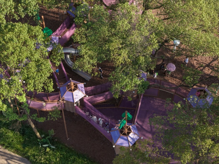 古老的“滑道”一路经过入口、游客中心和纪念森林,最初是为伐木而建的,现在是穿过森林的主要路线,另外还有支路进入更隐蔽的空间。在森林保护人员和当地步道建设者的指导下,这个步道系统随着地形而上,最终会到达一个可以看到大海和地平线的小丘。