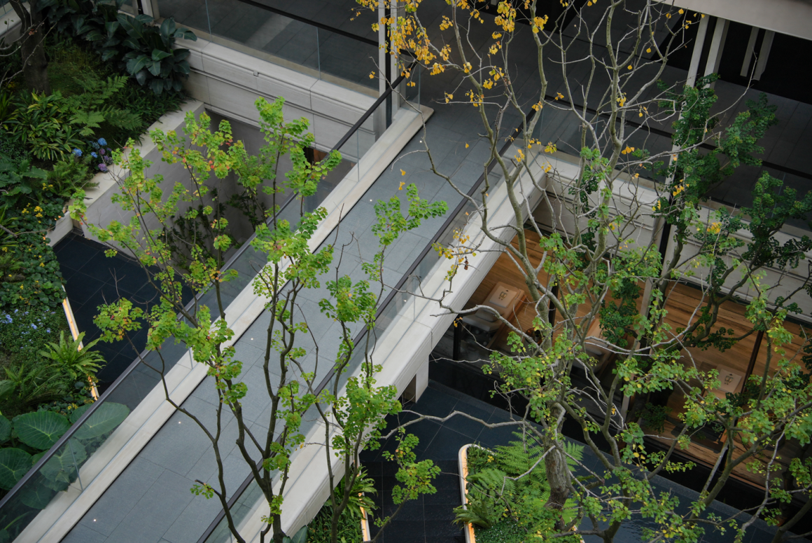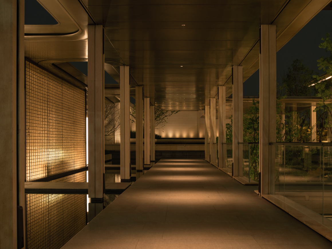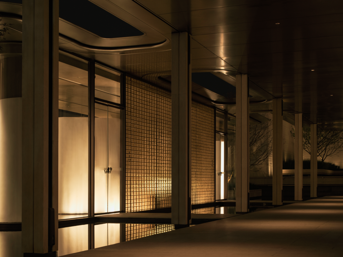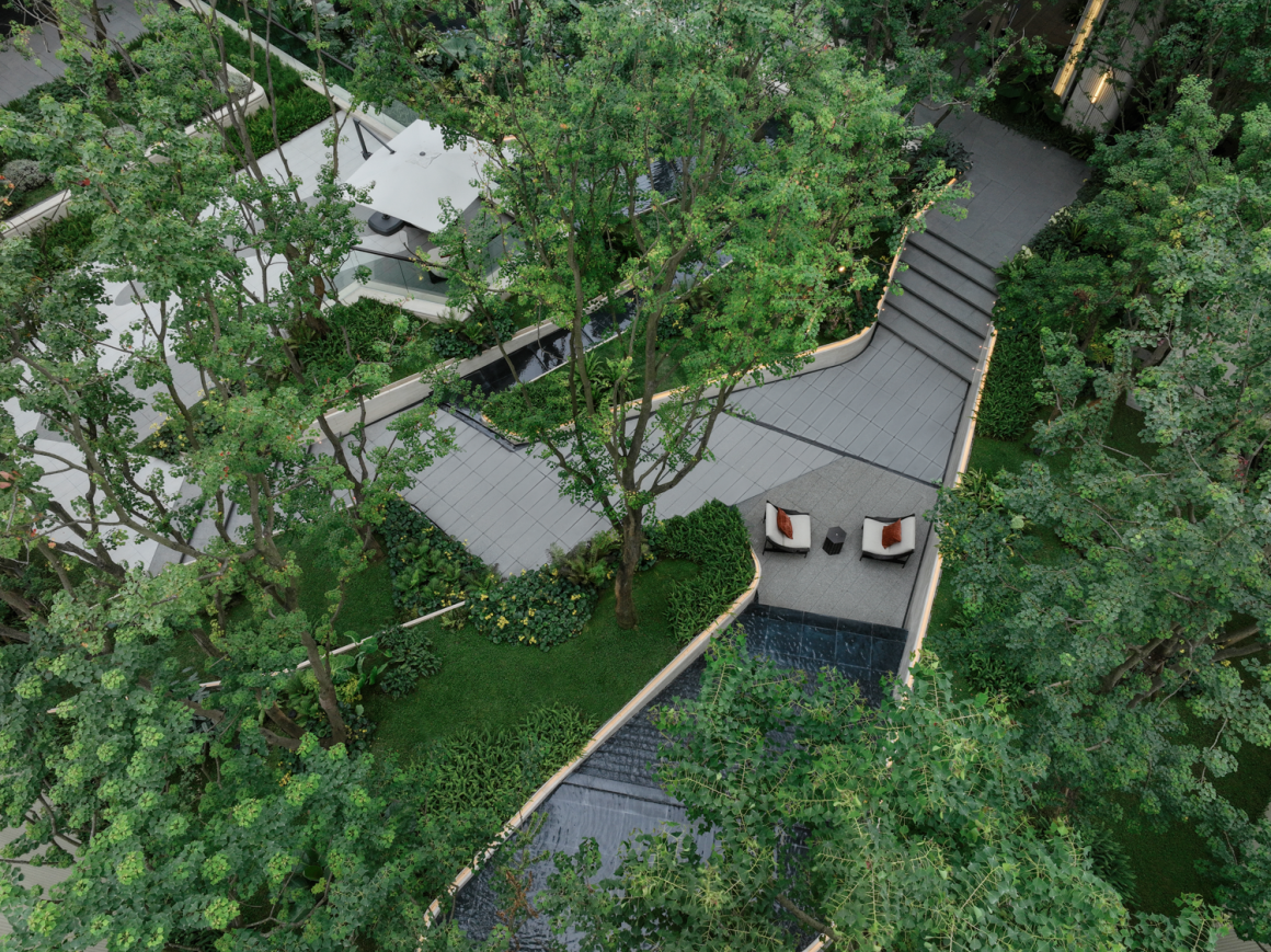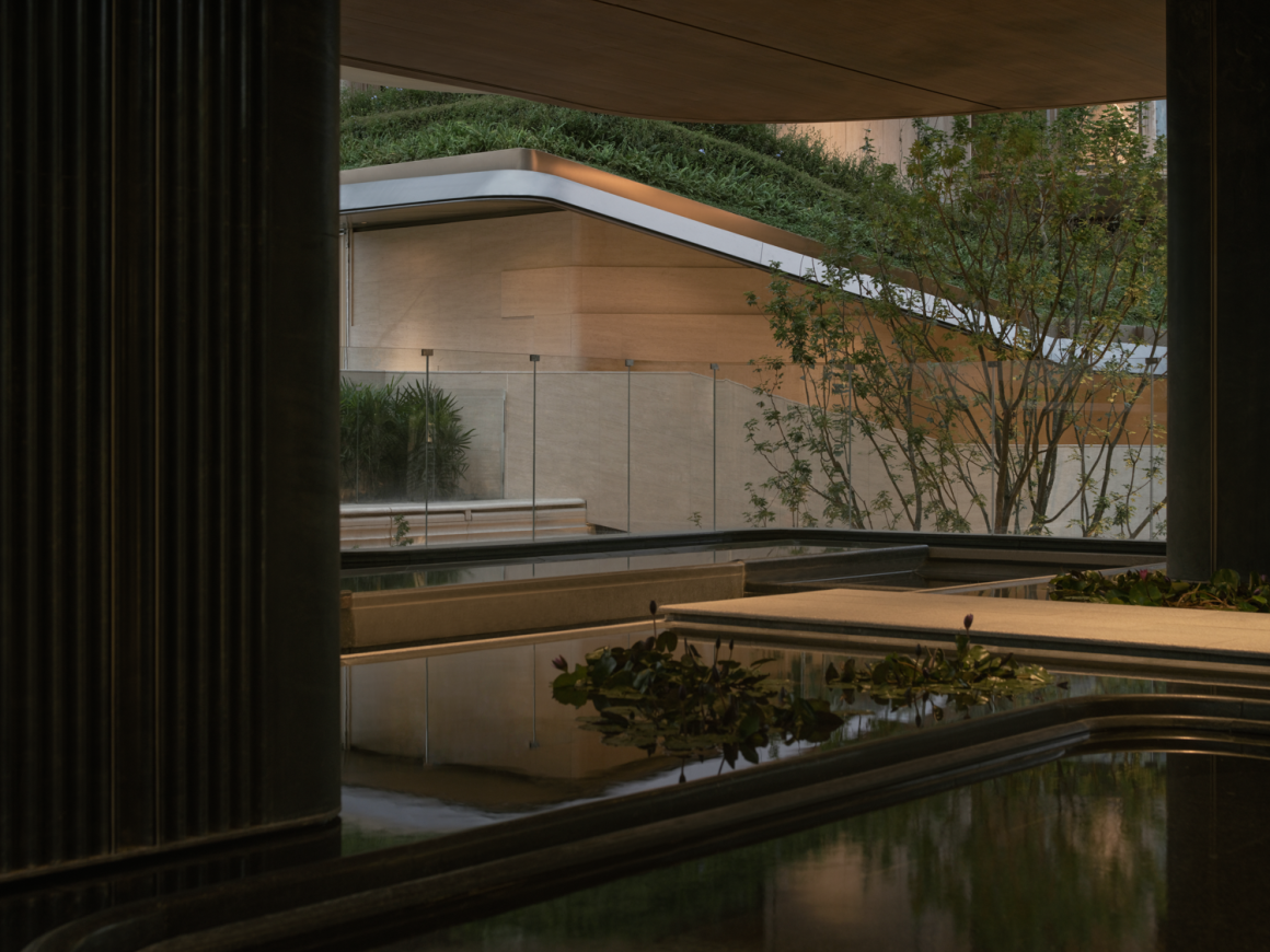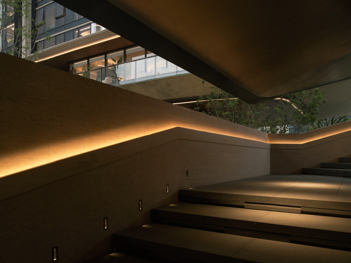 The sunken courtyard introduces the landscape concept of mountains and rivers in western Sichuan, absorbs the elegant temperament of Aman in Kyoto, builds a moss court with original stones, and integrates the essence of modern city with the luxury experience of natural tranquility. The technique of “hiding and revealing, collecting and releasing” has been reinterpreted here – through precise control of a 6.5-meter height difference and a 40 meter depth space, three-dimensional creation is achieved, with deep dialogue between moss fields, stone landscapes, and light and shadow.
