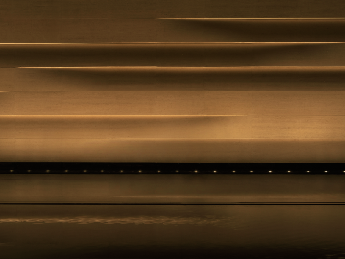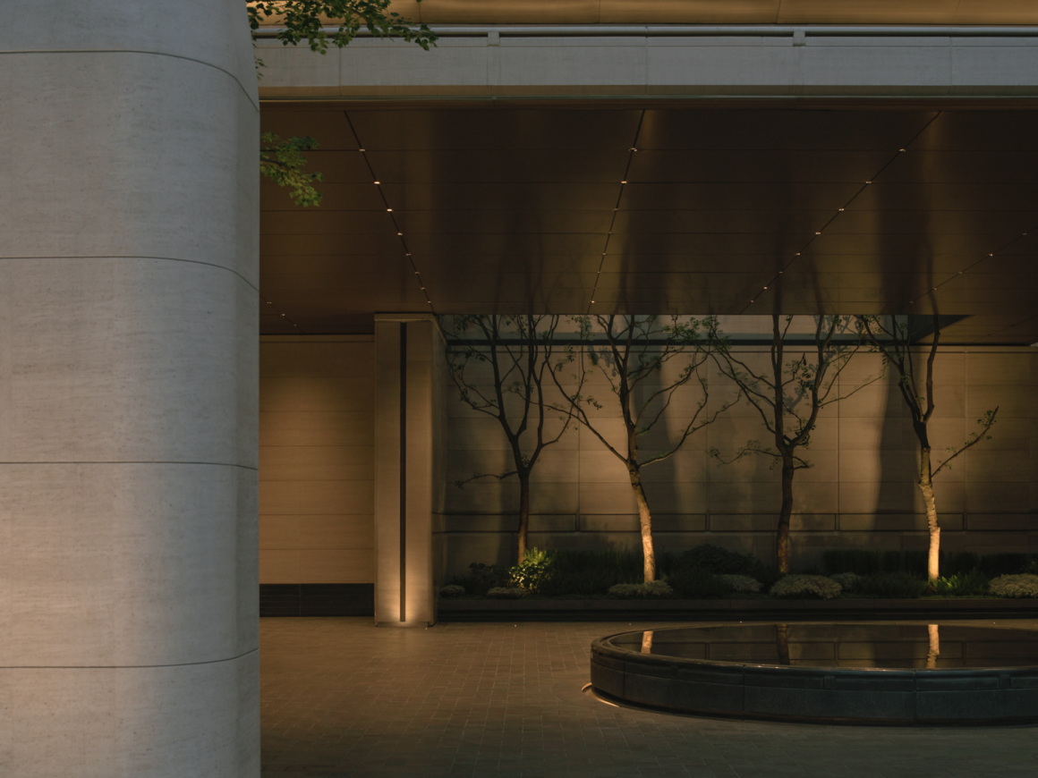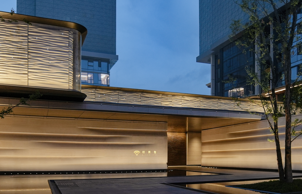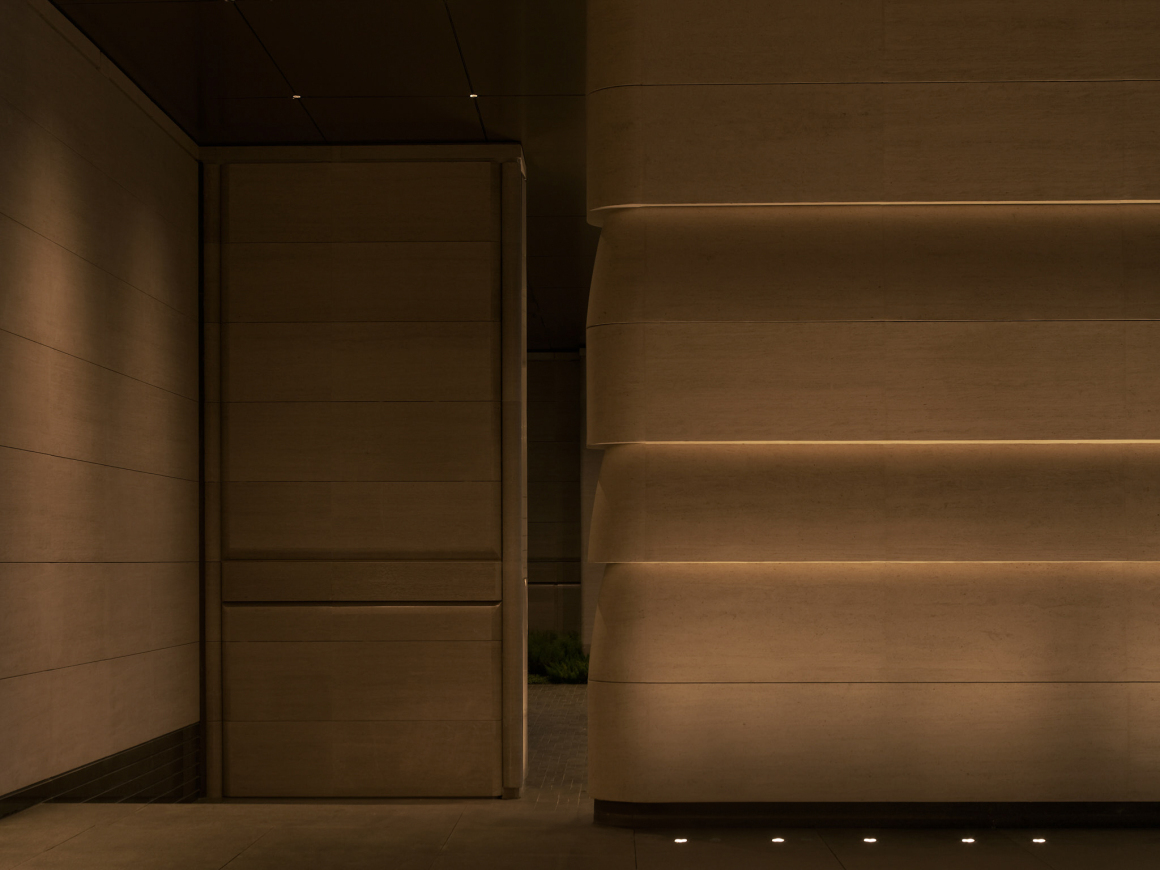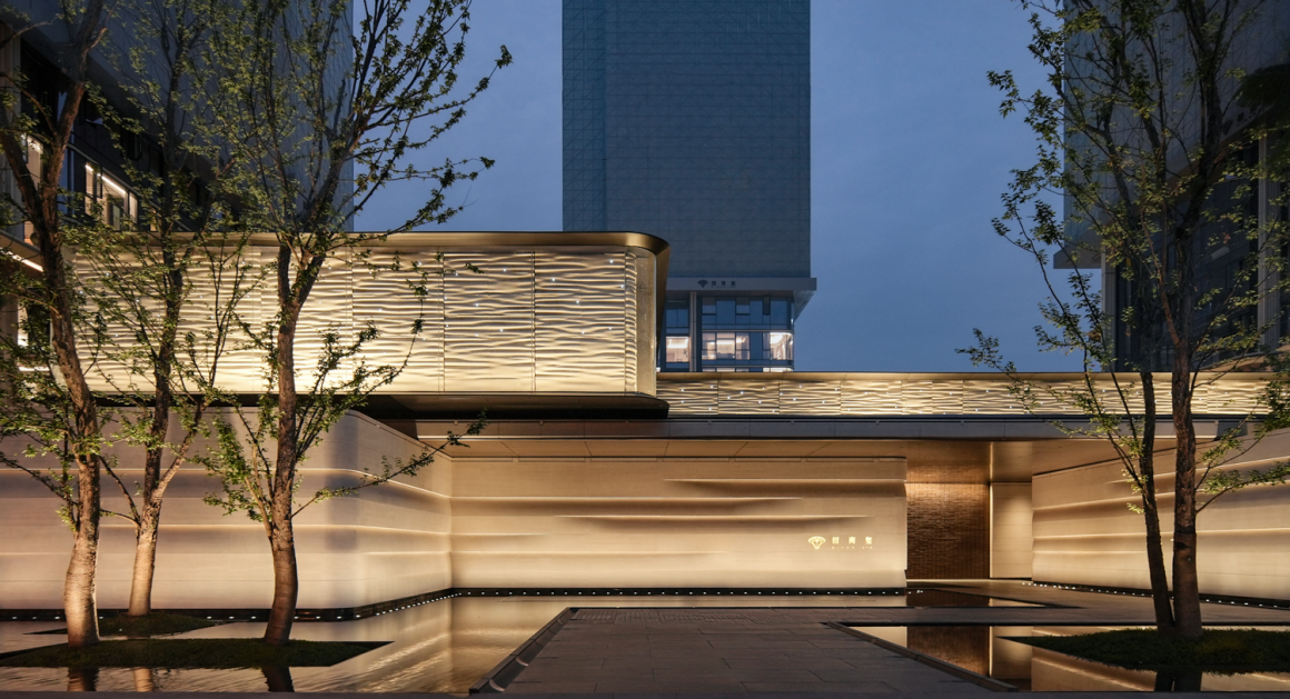Using water as a guide and welcoming with etiquette,Create a roundabout style drop off experience with an exquisite circular water feature. The main body of the water feature is made of finely carved stone, with a warm and jade like surface that reflects the light. It presents delicate and changing layers of light and shadow under different lighting conditions, creating a flowing rhythm in the static water feature. It is the visual core of finely carved stone on the way home.