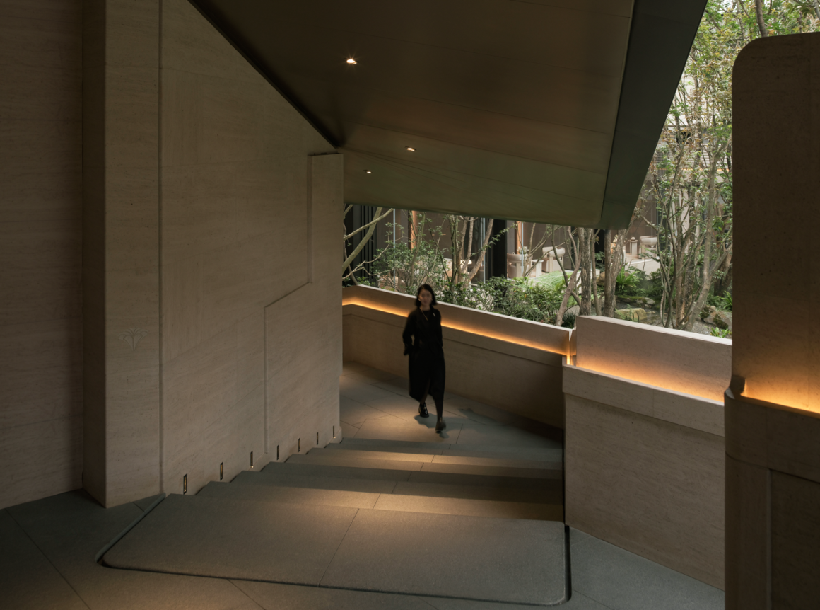 As a key hub connecting the sunken courtyard and the sales office, we have abandoned the straightforward logic of passage and instead created a secret art gallery with the soul of “turning and migrating”.