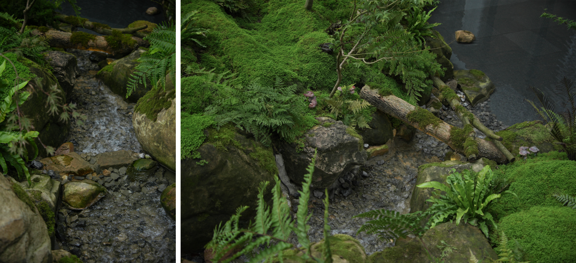 A carefully arranged spatial drama, with each step ascending, the frame scenery changes accordingly – sometimes focusing on the silence of a moss court, sometimes framing the dynamic of a hanging waterfall,Capture every frame of the forest.