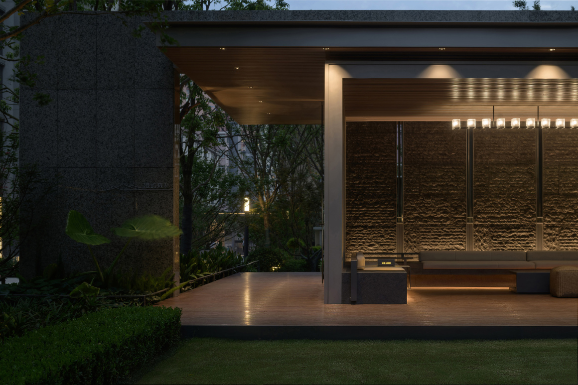 夜幕降临,柔和的灯光洒落在廊下,为每一个角落注入了别样的质感。木质的沉稳、灯光的柔和、典雅的氛围,在石材的自然格调里组成一幅安静又有温度的画面。