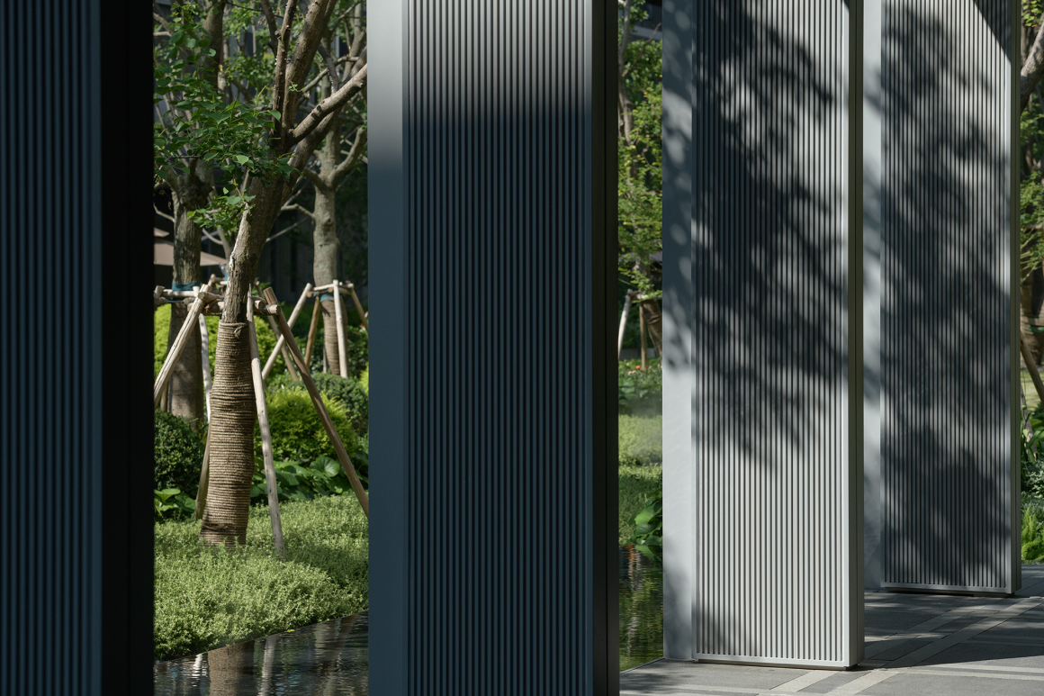 Weaving artistry, long embraced by luxury brands, symbolizes the pursuit of excellence and spiritual refinement in curated living. Drawing inspiration from the site’s historical context as a former textile factory, the project distills the weaving technique into a powerful symbol. This linear weaving motif permeates the development’s nomenclature, landscape spaces, and design details—forging unique imprints both tangible and intangible.