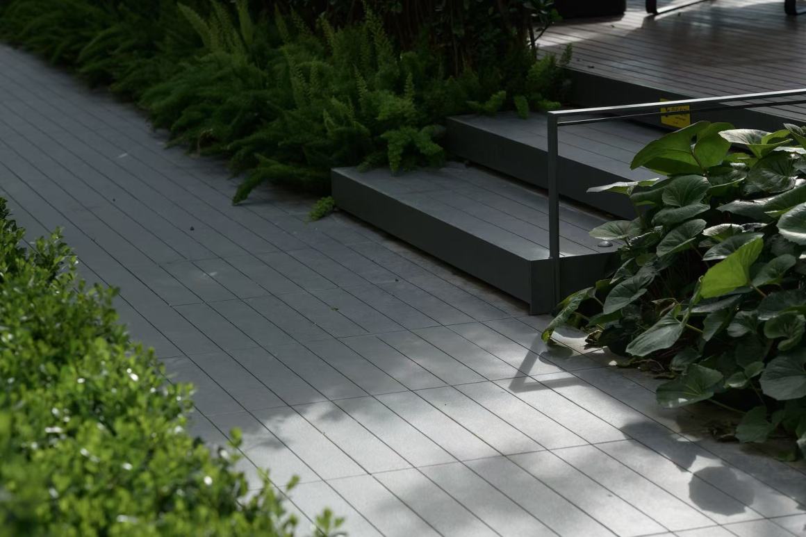 地库坡道上方前期与建筑互动,预留种植条件。形成阶梯式休闲空间,营造平和宁静、放松遐思的氛围。