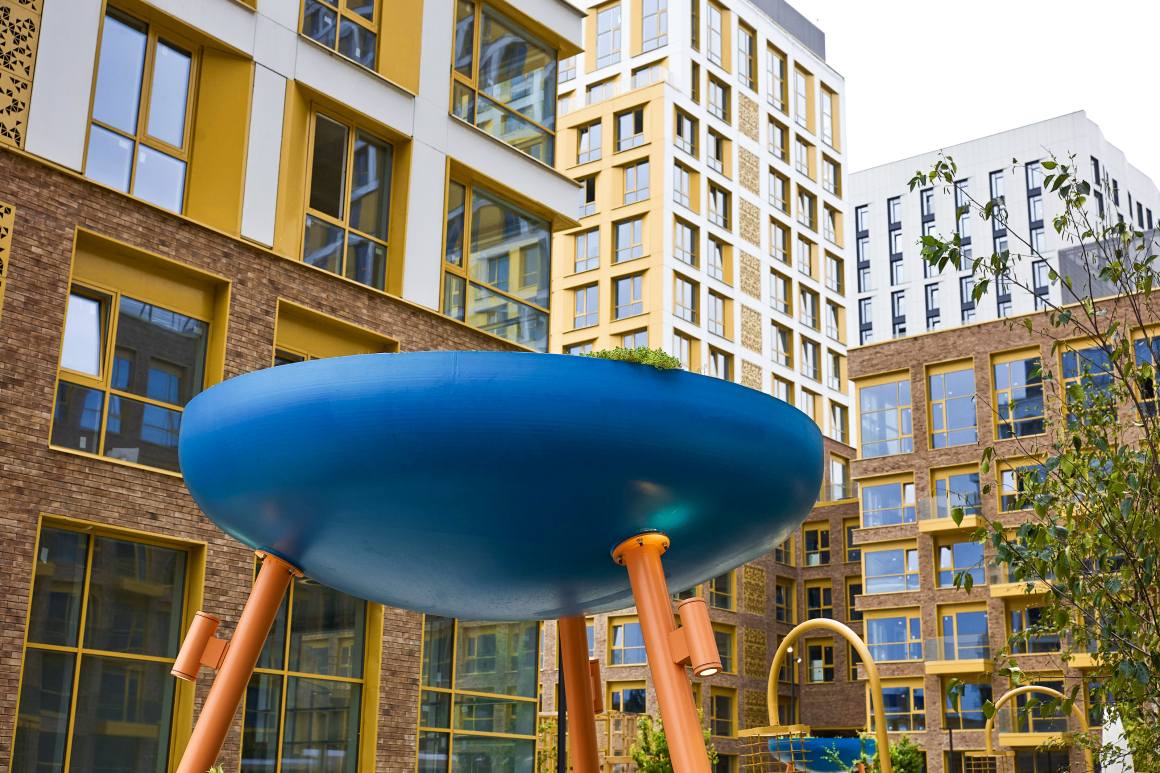 The masterplan is organized as a painterly composition, inspired by the works of Joan Miró, yet carefully calibrated to accommodate clear pedestrian routes and diverse functional zones. Residential towers divide the courtyard into three distinct areas, each offering a different rhythm of use: from active recreation to quiet contemplation.