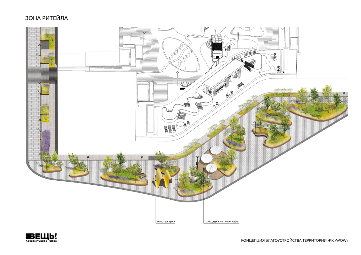 VESCH!:The courtyard of the WOW residential complex is conceived as an immersive landscape composition, where planning geometry, art references, and everyday functions are interwoven into a unified spatial narrative. The project’s name reflects the authors’ intention to evoke an emotional response — an architectural “wow” effect — comparable to the expressive language of 20th-century abstract art.