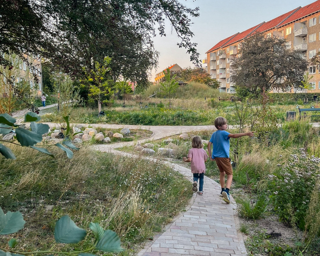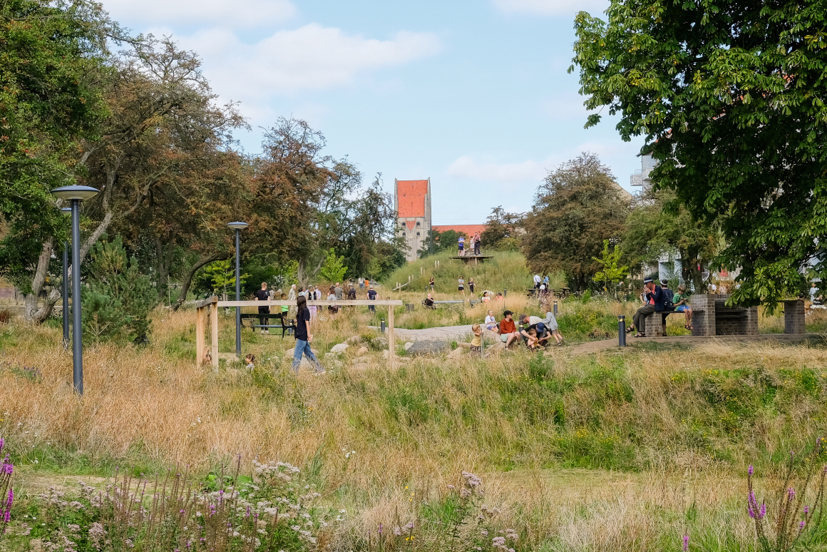 The new park design took the values and ideals of the original green areas, designed by legendary Danish landscape architect C.Th. Sørensen (1893-1979), and updated them to encompass the needs and aspirations of a modern city. Utterly transformed today, the original green areas had fallen into unsafe disrepair with no activities, usages, or play areas for the local kids and residents. The existing grass lawn was unable to manage or contain rainwater – resulting in veritable ‘rainwater motorways’ during thunderstorms – while also being very low on plant variation, wildlife, and biodiversity.