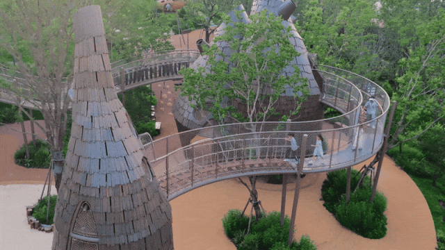 从种子树屋的温柔初探,到奇妙森林的勇敢攀越,设计充分考量、尊重各年龄段的游玩需求,根据儿童的身心发展特征,以及感官体验、行为模式设置分龄玩法,构建渐进式野趣探索环境,鼓励孩子们主动参与、大胆挑战。