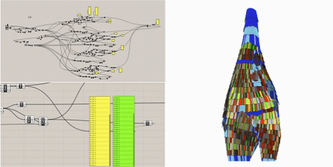 借助这套电池组,团队在方案阶段可基于设备简模快速生成意向表皮效果,直观展示设计意图,助力方案快速推进;在设备深化及生产阶段,可结合结构骨架间距及板材基础规格进行精细调控,得到标准表皮模块的最优排布方案,精准控制不同规格的木板面积,有效减少耗材,并生成相应图纸指导生成与安装。
