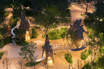 L&A GROUP: How do we create a forest in a modern city for today’s children? Blending ecology and art, creating conditions for natural exploration and adventure, a metasequoia theme park for children has been built in Wuhan Luxe Island.