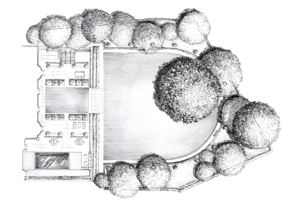 Luciano Giubbilei:以温特沃斯庄园的宏伟环境为背景,在卢西亚诺的眼中,这个花园成了一个对精心考虑的层次和简约美学的探索,同时也满足了客户对各种娱乐和餐饮空间的需求。