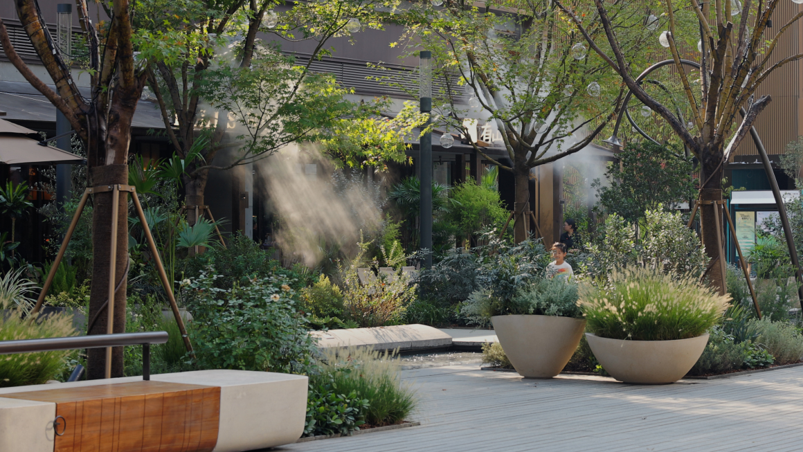 面对一个主体既已完成建造的国际范、精致感街区,风物营造的景观提升设计工作从2025年全面开启。我们在保留主体铺装、水景、乔木及空间骨架的前提下,调用景观师的多种方法让其转向一个具备杭州性格的松弛街区,最终让杭州的自然回归、让街道的生活回归。