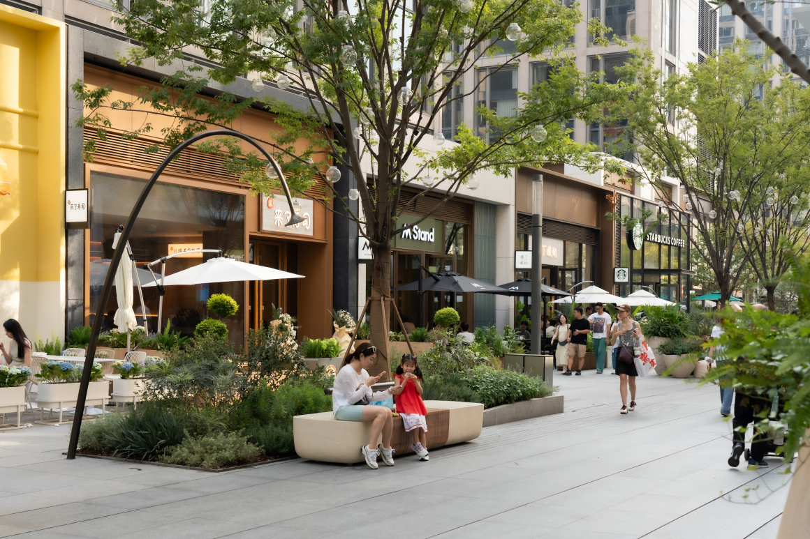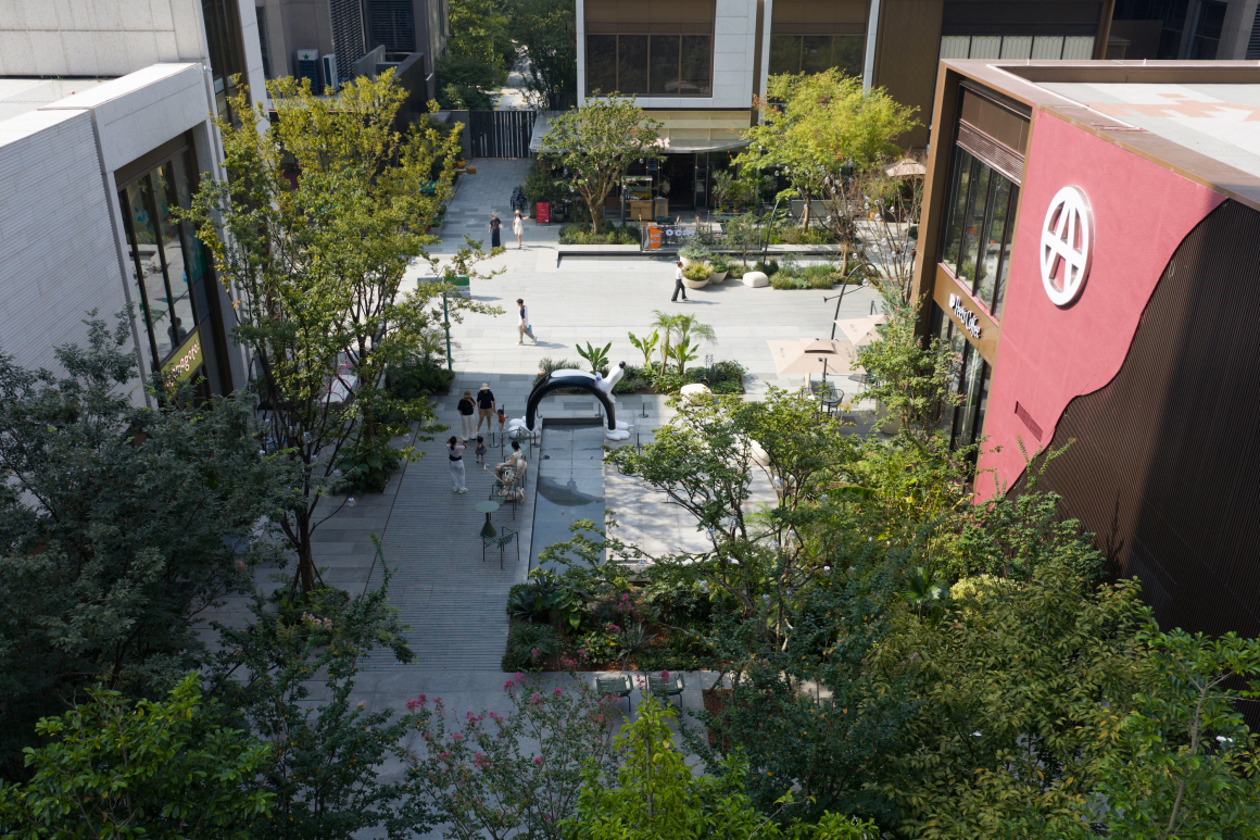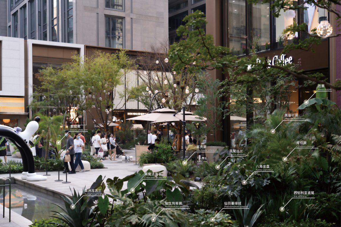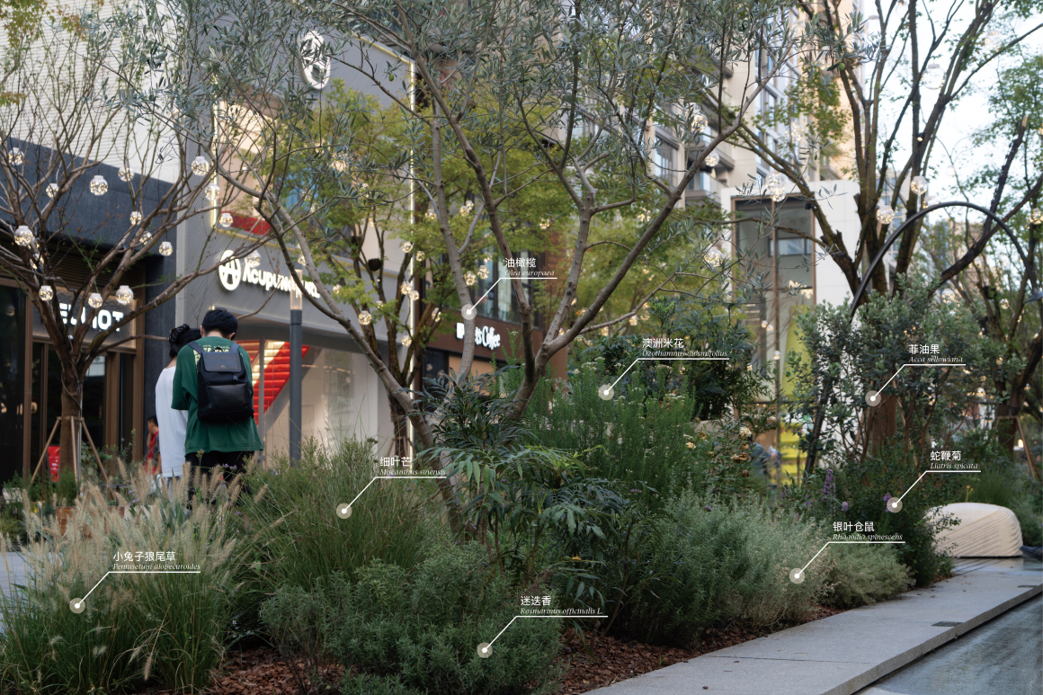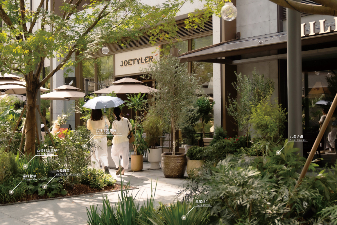 ▽街道植物种植设计,以城市花园的视角重新审视商业中公共空间,让自然回归,让生活回归 © Chill Shine 丘文三映 & 风物营造Landtek