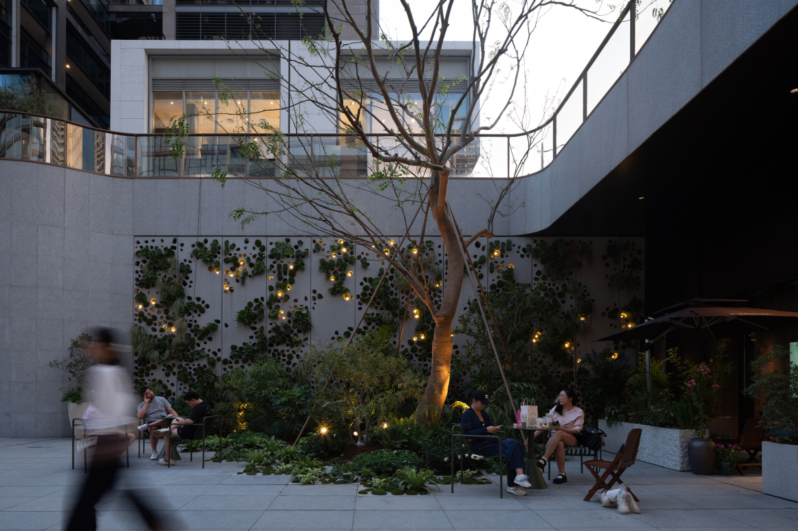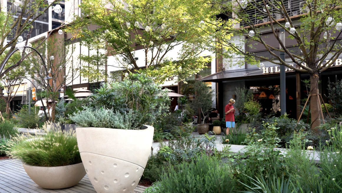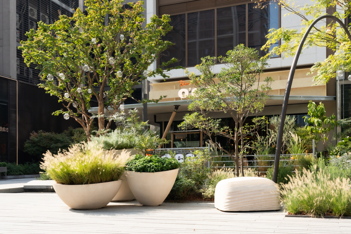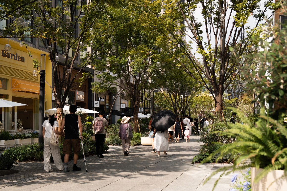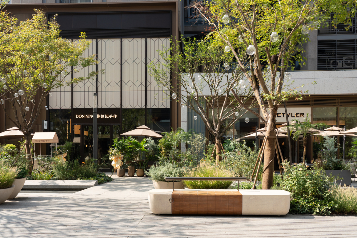 ▽街道植物种植设计,以城市花园的视角重新审视商业中公共空间,让自然回归,让生活回归 © Chill Shine 丘文三映 & 风物营造Landtek
