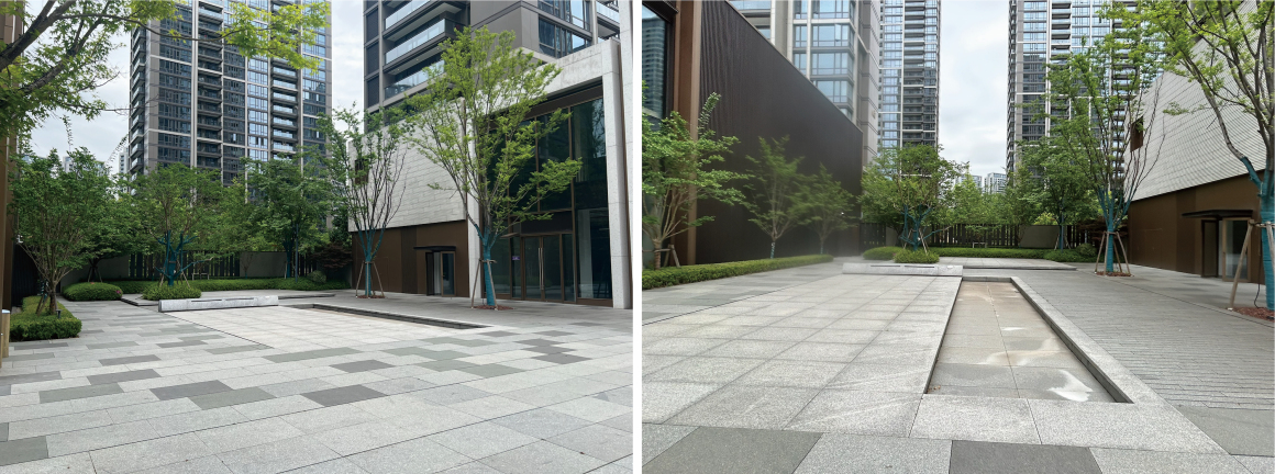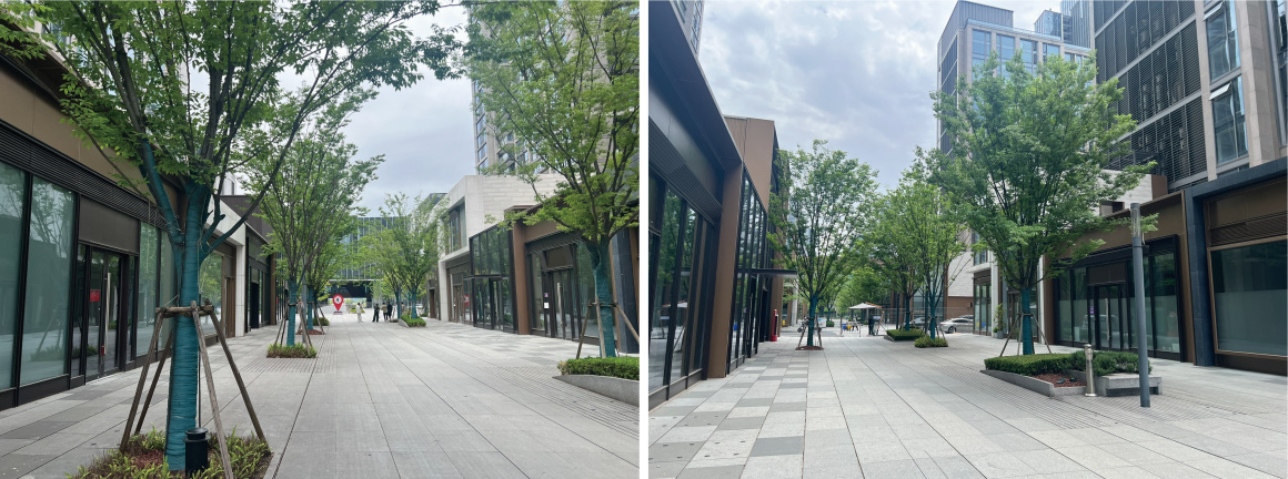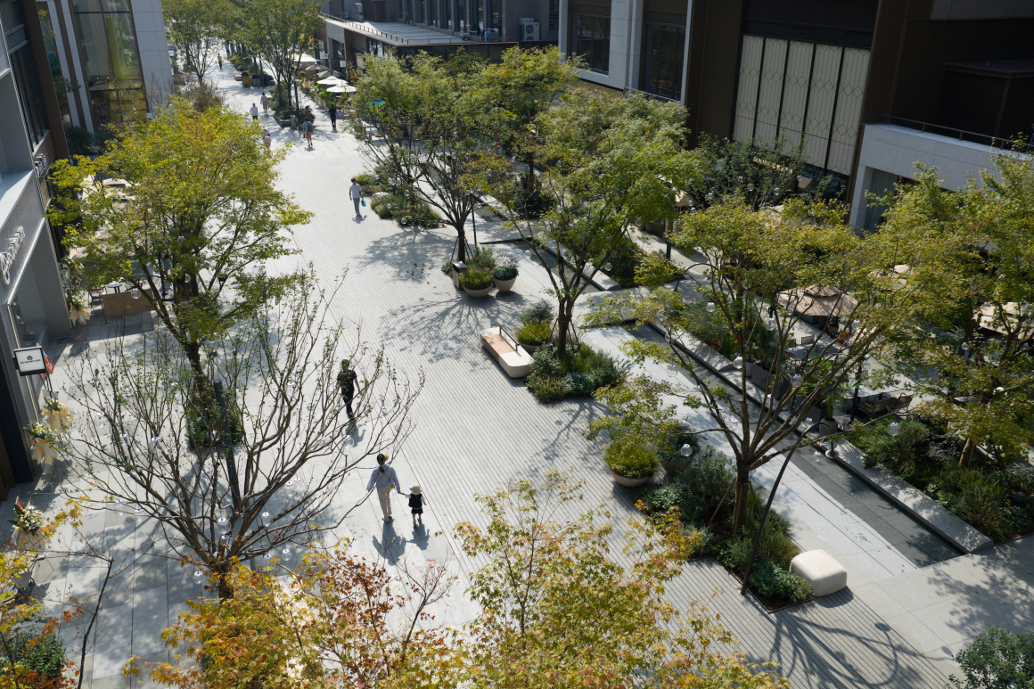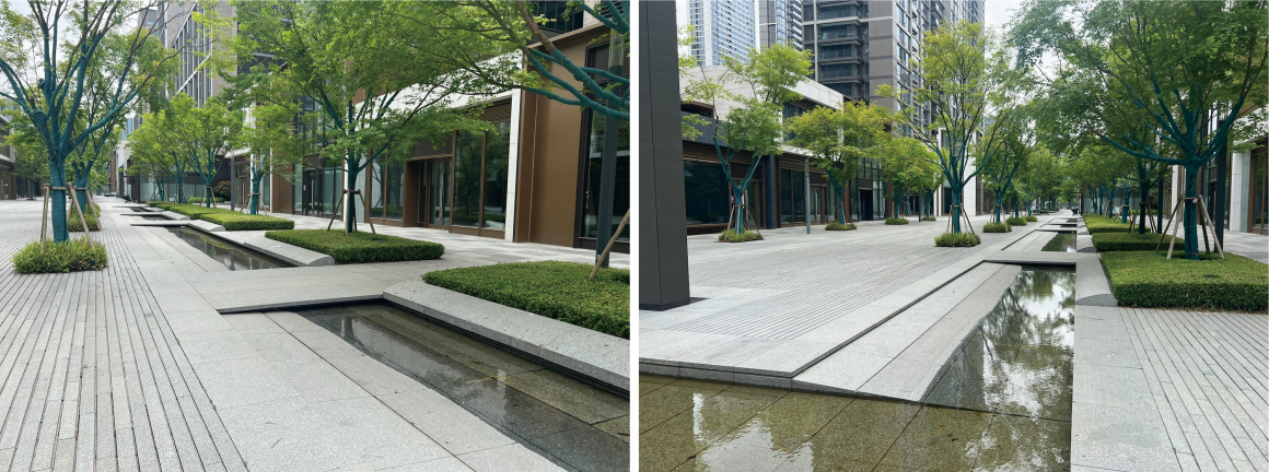 Facing an already constructed district with an international and sophisticated character, the landscape enhancement work led by Landtek officially commenced in 2025. Working within the constraints of preserving the main pavements, water features, trees, and spatial framework, we employed a variety of landscape architectural techniques to transform it into a relaxed district imbued with Hangzhou’s unique character. The ultimate goal was to reintegrate Hangzhou’s natural essence and restore vibrant street life.