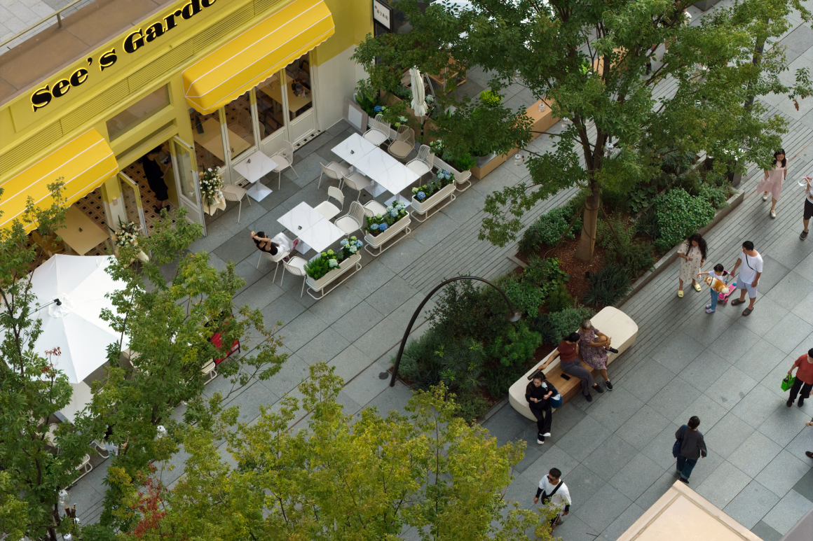 “ 在后疫情时代,设计从新调和商业空间的软硬图底关系,让多元性“挤进”街道空间,以营造更生动舒适的体验式购物环境。”