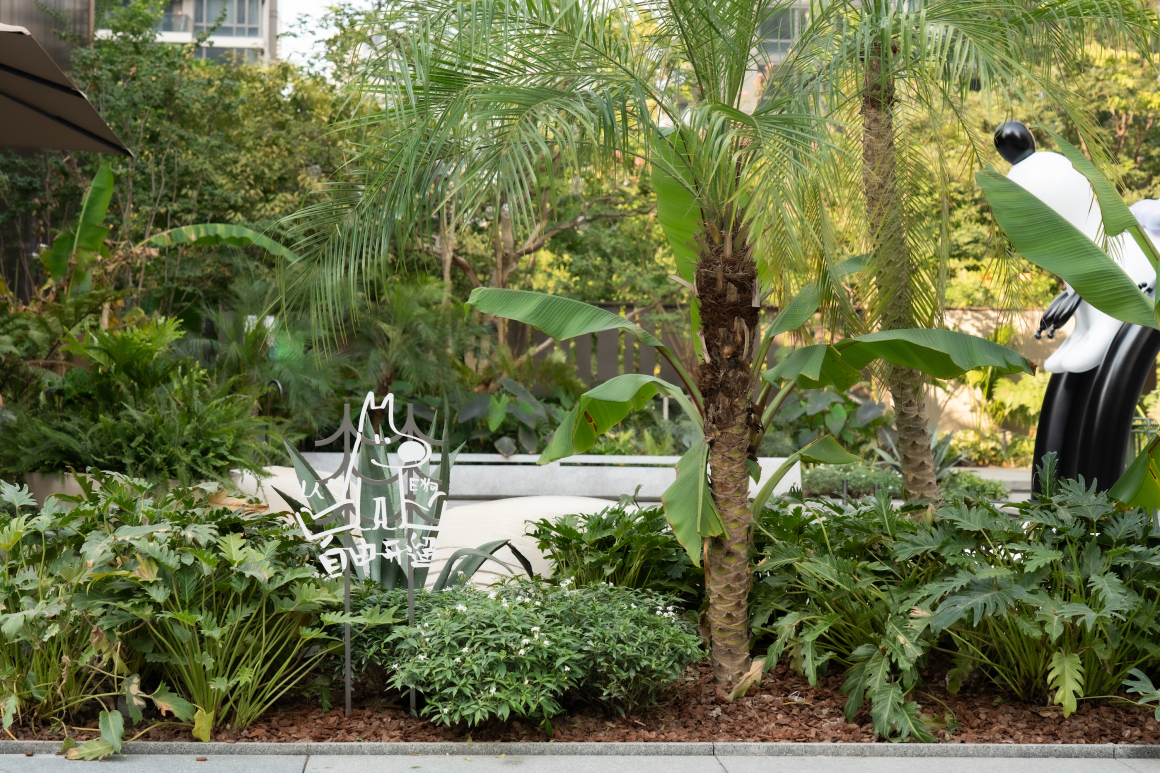 Adjacent to the Surge Garden and similarly positioned at the heart of the commercial district, the Pet Garden is uniquely defined by its surrounding tenants: pet supply stores, pet photography studios, and pet cafés flank its sides. Embracing this context, we introduced significant interventions—removing large areas of hard paving, expanding planting zones, and infusing the scene with the pictorial language of Henri Rousseau. The result is an exotic, mysterious, and distinctly different garden, designed to become a natural social hub for pets and their owners along this vibrant street.