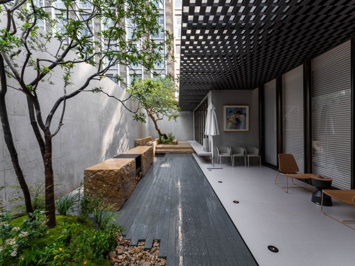 RooMoo studio :The restaurant is tucked in a green courtyard of a Shanghai boutique hotel. The atmosphere is wanted to be in balance between modernity and nature.