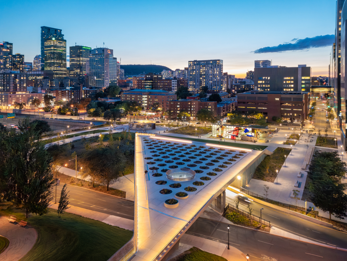 Montreal, March 4, 2026 – Place des Montréalaises is reshaping Montreal’s civic and tourist heart by covering a sunken expressway with a vibrant esplanade. Designed by Lemay in collaboration with artist Angela Silver and the engineering team at AtkinsRéalis, this major intervention connects Old Montreal to downtown and, above all, inscribes the memory of