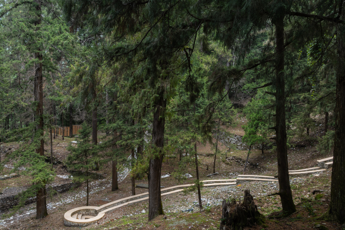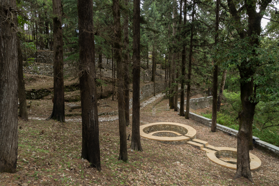 Compartment S4 :这是坐落在印度北阿坎德邦宁静的松林中,一个将历史保护与生态保护完美融合的静谧场所。它曾经是英国殖民时期遗留下来的墓地,其历史可追溯至19世纪50年代中期,这座墓园一度破败不堪、杂草丛生,场地有200多座坟墓,墓园静谧地坐落在松树林中,远离奈尼塔尔熙熙攘攘的游客。出于对公共事务的关注,设计事务所Compartment S4 向奈尼塔尔地区旅游部门提议,将这座破败的墓园改造成一座公共纪念公园。公园的设计简约而庄重,力求在不破坏墓碑的前提下,使其与周围的自然环境融为一体。设计理念旨在提升游客的感官体验,使人们既能缅怀逝者,又能赞颂生命的馈赠。