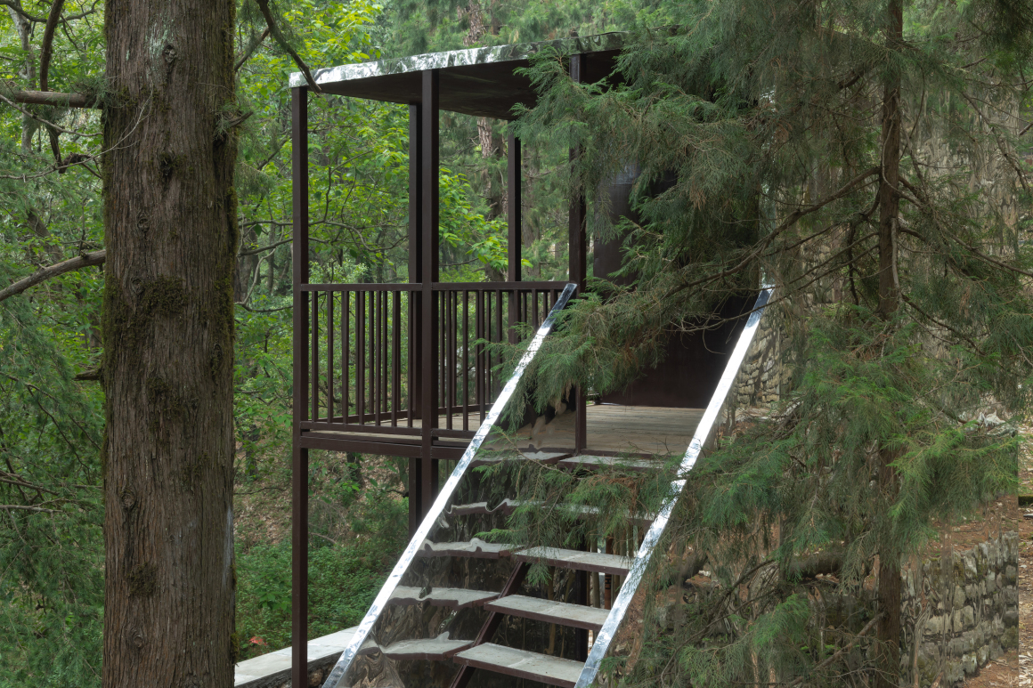 在感官公园,历史并非仅仅是被观察,而是通过感官被体验。一座镜面小屋融入森林,营造出一种如梦似幻的视觉体验。一口巨大的竹制风铃将自然之声与人工之声交织成和谐的旋律。芬芳的雪松木、可食用的浆果园、触感丰富的森林纹理、镌刻的标牌以及凿刻于天然涵洞中的石凳,共同构建了一个令人沉浸其中的环境。旅程的终点是一个象征生命轮回的生动装置,引人深思存在、联结以及时间的必然性。