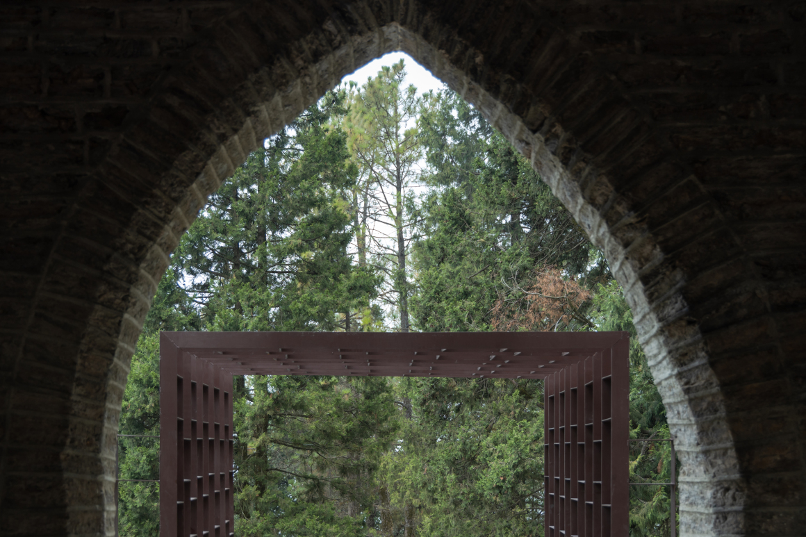 以一段身心之旅为设计理念,引导参观者同时思考记忆、生命和自然。修复后的石门,在现代金属结构的巧妙衬托下,为过去与现在的对话奠定了基调。蜿蜒的石径自然地穿过森林,随着每一处装置的出现,逐渐揭开这片土地的故事,为参观者带来片刻的静谧探索。
