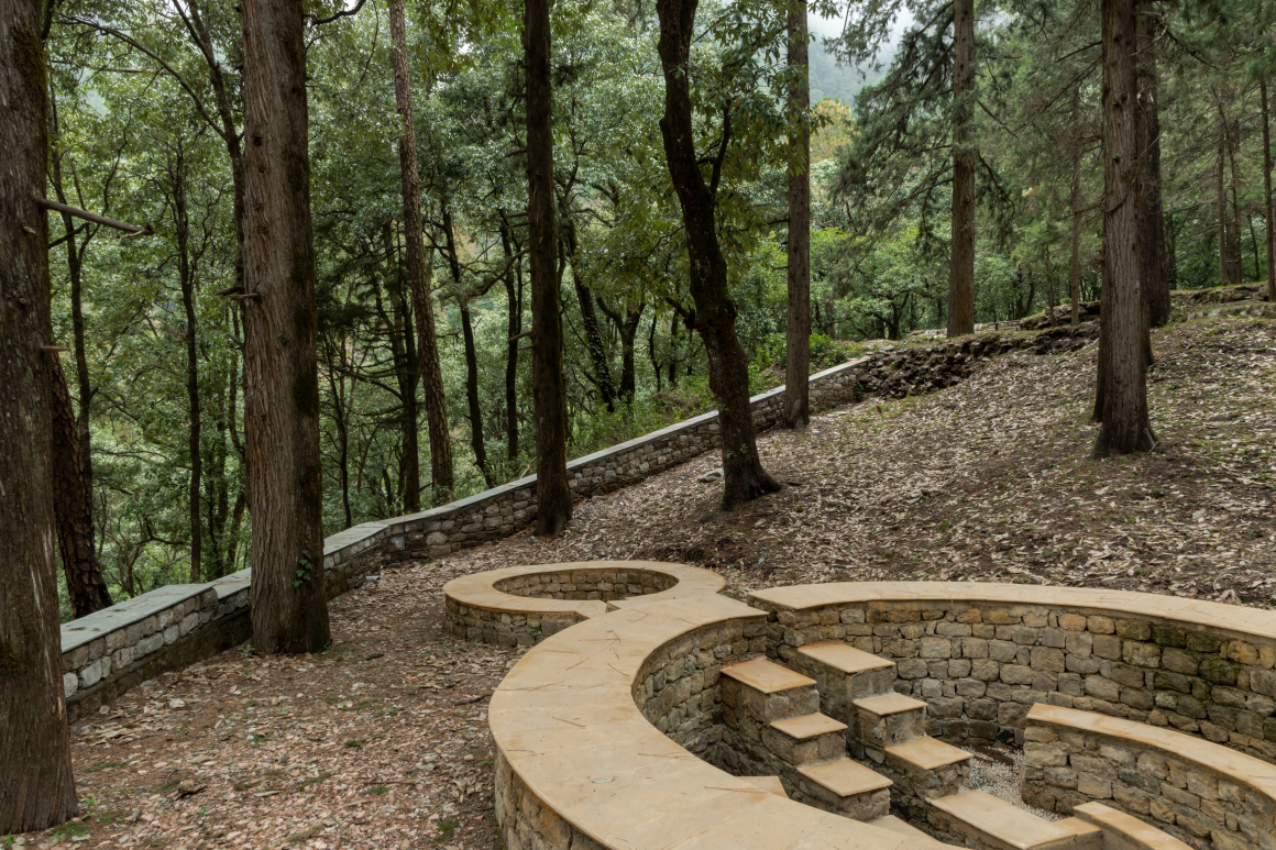 如今经Compartment S4精心改造,成为一处意义非凡的公共空间,供人们沉思冥想、探索感官世界。北阿坎德邦政府设想打造一个方便公众使用的场所,而设计团队则采取了一种更为细致入微的诠释——既尊重这片土地层层叠叠、往往鲜为人知的历史,又保护了其脆弱的生态系统。