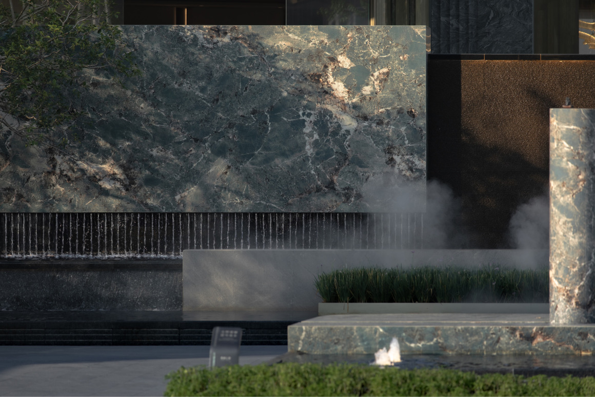 When the morning light penetrates the water curtain, and when nature and stone are reflected on the water surface, water carries the narrative of light. It is a philosophical vessel for “contemplating water to attain enlightenment” in Oriental aesthetics, ultimately completing the pursuit of time and the ultimate expression of mottled textures amid the flowing light and shadows.