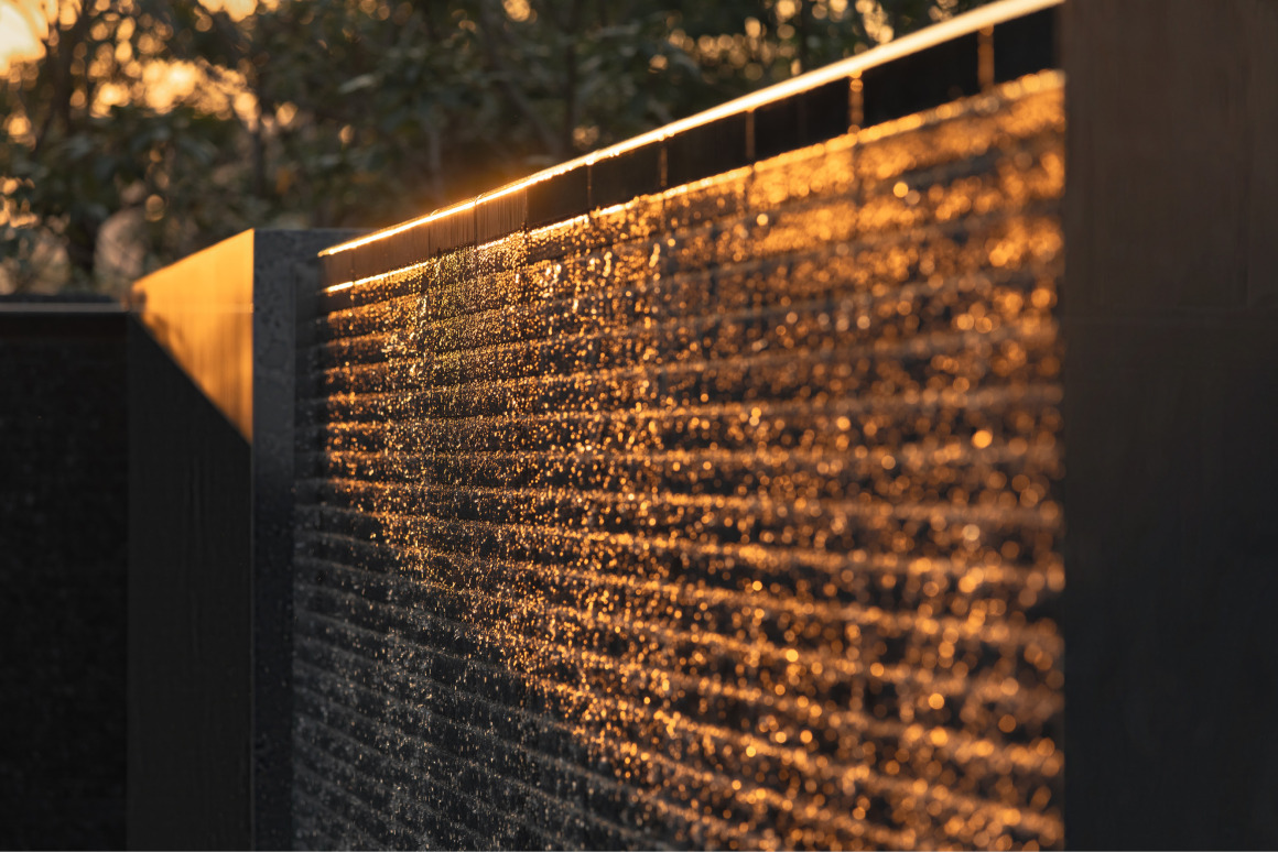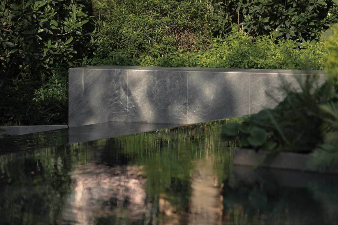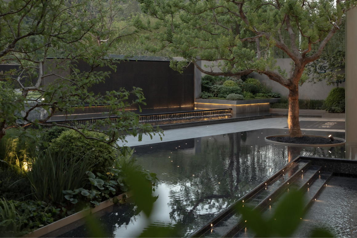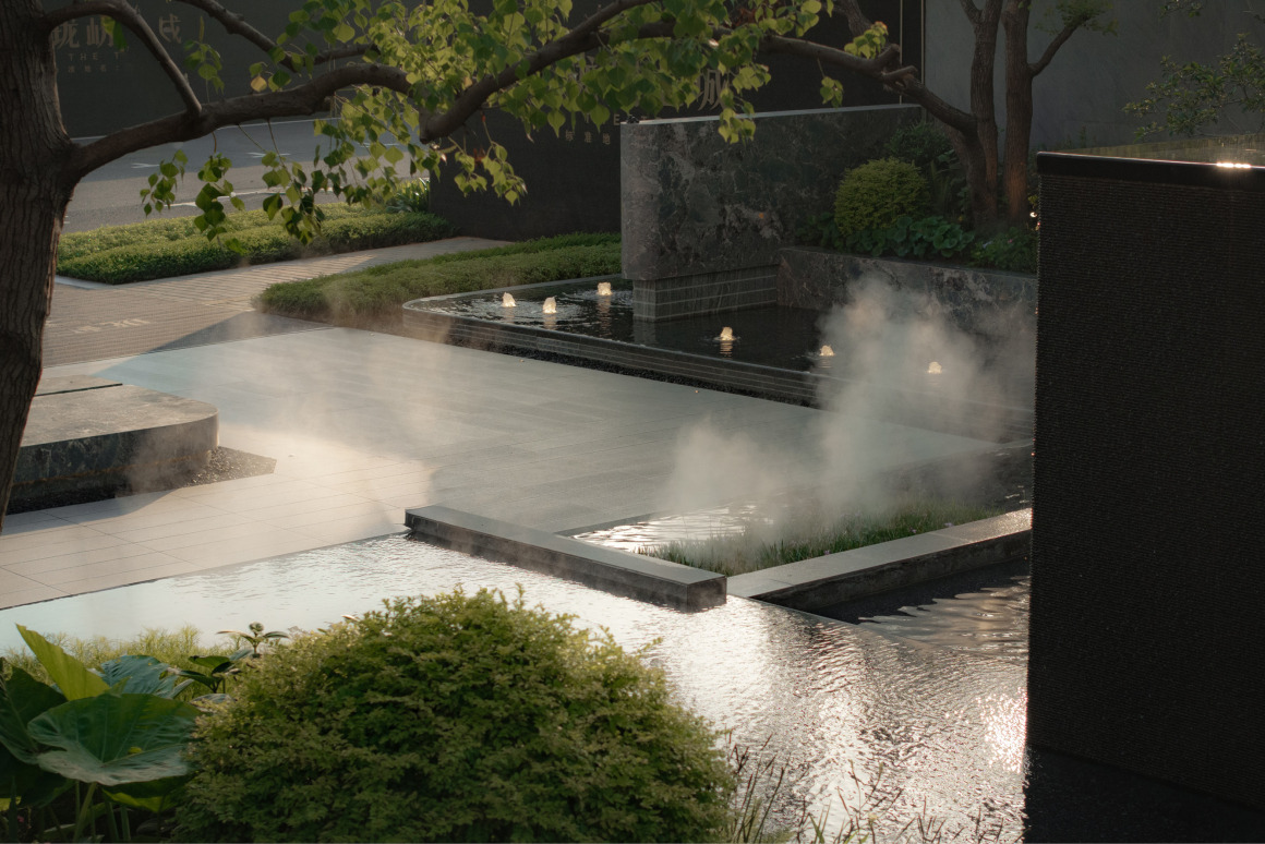 当晨光穿透水幕时,当自然与石材倒映在水面时,水承载着光的叙事,是东方美学中 “观水悟道” 的哲学容器,最终在流动的光影中,完成对时间的追寻、对肌理斑驳的极致体现。