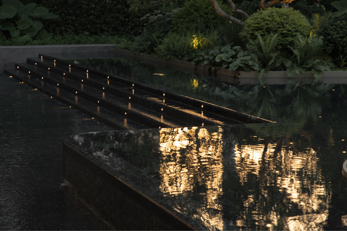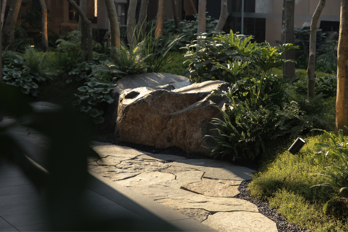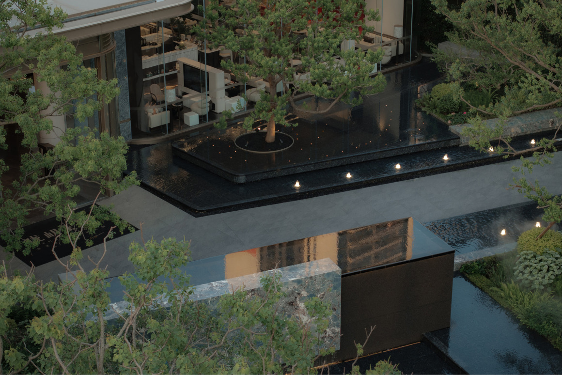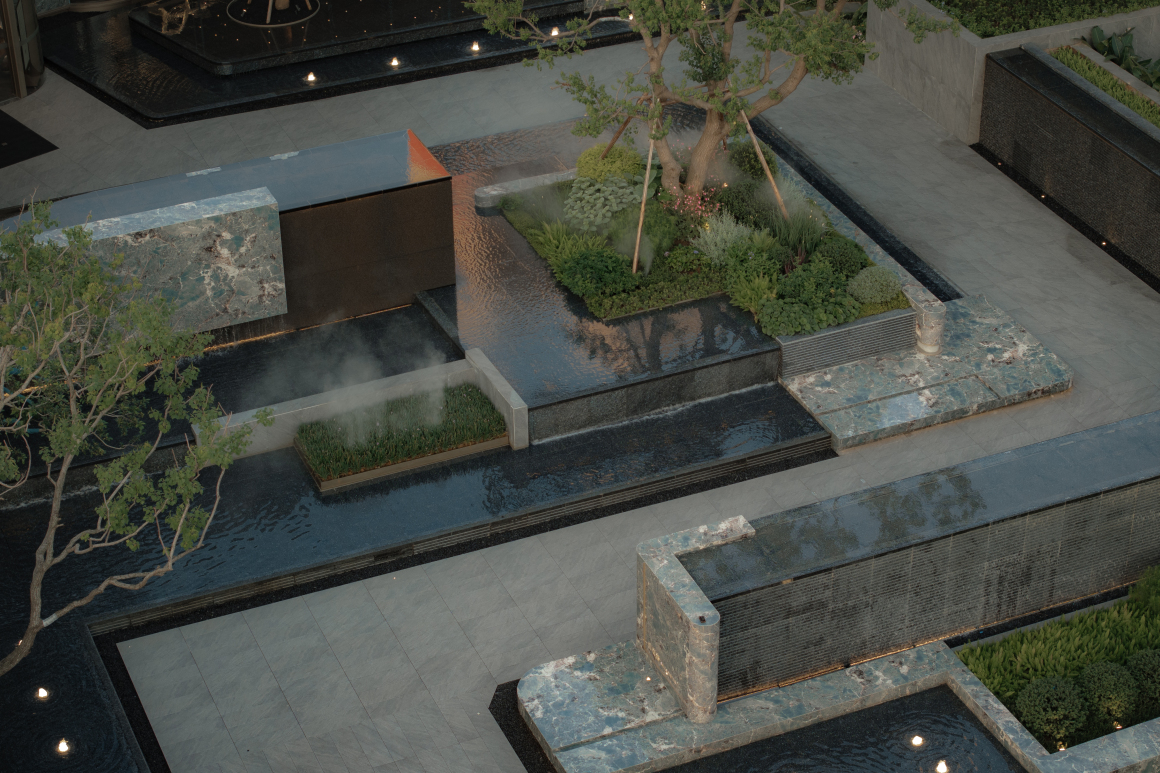 当晨光穿透水幕时,当自然与石材倒映在水面时,水承载着光的叙事,是东方美学中 “观水悟道” 的哲学容器,最终在流动的光影中,完成对时间的追寻、对肌理斑驳的极致体现。